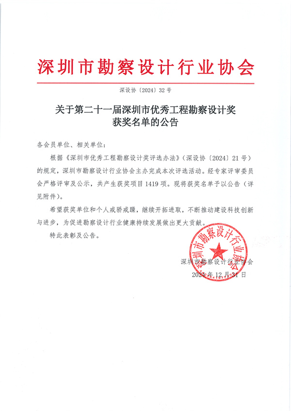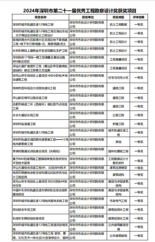 公司榮獲82項(xiàng)深圳市第二十一屆優(yōu)秀工程勘察設(shè)計(jì)獎(jiǎng)