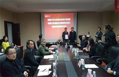 2016年11月29日下午,我司與湖南大學(xué)舉行戰(zhàn)略合作協(xié)議簽訂暨兼職教授受聘儀式。我司陳宜言董事長,監(jiān)事會宋榮亮主席,黨委副書記、紀(jì)委書記郭明,副總經(jīng)理許華林及相關(guān)部門負(fù)責(zé)人;湖南大學(xué)校長段獻(xiàn)忠,中國工程院院士陳政清,湖南大學(xué)科學(xué)技術(shù)研究院科技合作辦公室主任粟石軍,土木工程學(xué)院書記趙明華,院長陳仁朋等校院領(lǐng)導(dǎo)、教授、老師學(xué)生代表出席儀式。儀式由陳仁朋院長主持。