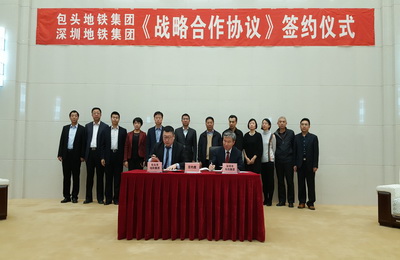 2016年12月5日下午,深圳地鐵集團有限公司與包頭市地鐵投資(集團)有限公司簽署《戰(zhàn)略合作協(xié)議》。深圳地鐵集團林茂德董事長、陳賢軍財務(wù)總監(jiān)、相關(guān)部門負(fù)責(zé)人,包頭市政府張建中副市長、馬富副秘書長,包頭地鐵集團王勇董事長、鮑云飛黨委書記及班子成員等20多人出席簽字儀式并交流座談。