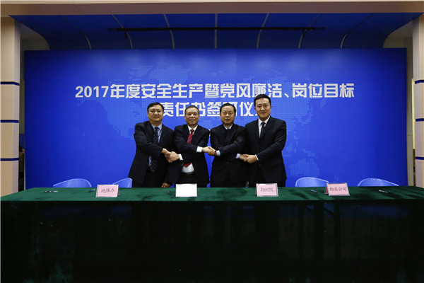 參加2017年度安全生產(chǎn)暨黨風(fēng)廉潔、崗位目標(biāo)責(zé)任書簽訂儀式人員合影