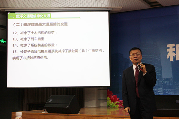 會上,簡煉副總經理首先從四個方面講解了磁浮交通特性和適應范圍,深刻探討了磁浮交通的發(fā)展歷史、現(xiàn)狀、存在的問題以及發(fā)展前景。磁浮交通是信息化交通,它的技術核心是懸浮控制軟件和計算機自動控制系統(tǒng),該系統(tǒng)能夠智能控制列車抱軌。磁浮交通是不接觸軌道并在軌道上飛行的新型交通方式,是大道至簡的交通形式。簡煉副總經理分別從安全性、適用性、經濟性、環(huán)境擾動性等11個方面講解了磁浮交通的優(yōu)勢,也分析了一些制約磁浮交通發(fā)展的因素。