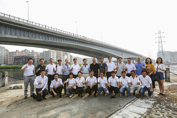 下午,部分與會嘉賓和專家又興致勃勃乘車來到東寶河新安特大橋現(xiàn)場進(jìn)行參觀。施工單位中鐵七局集團(tuán)有限公司的現(xiàn)場負(fù)責(zé)人向大家介紹了項目的基本情況和施工進(jìn)展,并與大家進(jìn)行了愉快的交流。據(jù)悉,東寶河新安特大橋位于深圳與東莞交界的東寶河上,采用城市主干道標(biāo)準(zhǔn)進(jìn)行設(shè)計,分左右兩幅,于2014年12月17日開工建設(shè),2017年1月完成合龍,預(yù)計2017年8月通車。