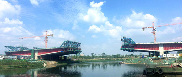 波形鋼腹板組合梁特大橋現(xiàn)場