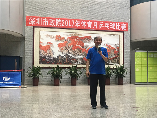 2017年11月14日下午,市政院2017年體育活動月乒乓球比賽在市政設(shè)計大廈主樓大堂精彩開戰(zhàn)。國球乒乓一直深得公司員工喜愛,今年的體育月乒乓球賽吸引了各部門眾多乒乓愛好者參與。參賽選手們激情滿懷,觀戰(zhàn)的同事們熱情高漲,助威聲、贊嘆聲此起彼伏,熱烈的氣氛洋溢在比賽現(xiàn)場。公司董事長陳宜言為比賽致辭,并與副總經(jīng)理張健君一起為比賽開球。副總經(jīng)理公司許華林也親臨比賽現(xiàn)場為運動員們加油。