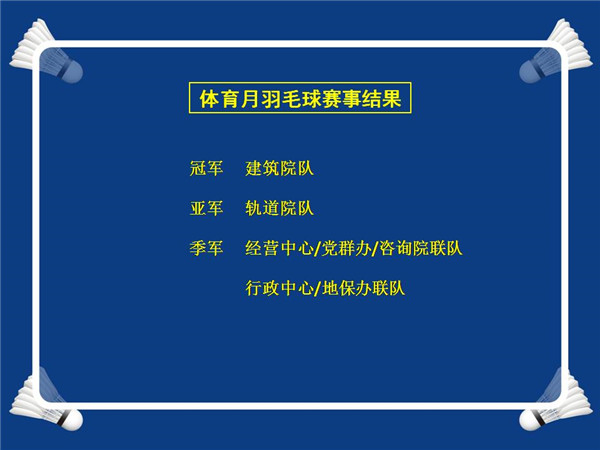 本次體育月自11月1日開幕以來,歷時一個月,設(shè)置了足球、籃球、羽毛球、乒乓球、攝影等比賽項(xiàng)目,各部門積極參與,反響空前。