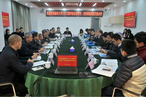 會上,董事長陳宜言大師代表公司對布魯諾院長一行表示熱烈歡迎,并介紹了我公司博士后科研工作站、科研團(tuán)隊和科技創(chuàng)新工作以及相關(guān)專業(yè)技術(shù)人員配備情況。他表示,希望雙方能夠就人才交流、科研項目等多方面開展緊密的技術(shù)合作,實現(xiàn)雙方共贏發(fā)展。隨后布魯諾院長對我公司的熱情接待表示感謝,對我院在人才建設(shè)與科研創(chuàng)新方面的重視給予了高度評價,并表示校企合作有助于高校科研成果的推廣應(yīng)用,希望未來在新材料、新技術(shù)方面能與我公司有更多的交流與合作。隨后,福州大學(xué)胡昌斌副院長對福州大學(xué)土木工程“一流學(xué)科”建設(shè)情況進(jìn)行了介紹,并表示希望通過加強(qiáng)校企合作交流以努力實現(xiàn)十三五規(guī)劃的目標(biāo)。