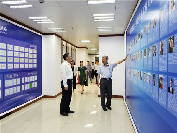 會前,袁毅一行在陳宜言大師、蔡明陪同下到深圳市區(qū)參觀了由我公司設(shè)計的深南大道等項目作品。隨后在公司辦公樓參觀了公司文化宣傳長廊、教授博士專家團隊及成果展示墻、創(chuàng)新設(shè)計研究院、國家博士后科研工作站、BIM設(shè)計研究院、院士(專家)工作站、陳宜言設(shè)計大師工作室,對我公司高水平設(shè)計項目、高端人才引進、科研創(chuàng)新以及前沿領(lǐng)域平臺建設(shè)等方面表示肯定。