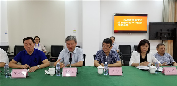2018年6月15日上午,南平市委書記袁毅,南平市委副書記張國旺,南平市委常委、統(tǒng)戰(zhàn)部部長莊莉,南平市委副秘書長、辦公室主任楊青建,武夷山市委書記林旭陽等一行到我公司考察指導。深圳南平商會會長吳坤等領(lǐng)導隨行考察交流。我公司董事長、全國工程勘察設(shè)計大師陳宜言及領(lǐng)導班子成員參加座談。座談會由我公司總經(jīng)理蔡明主持。