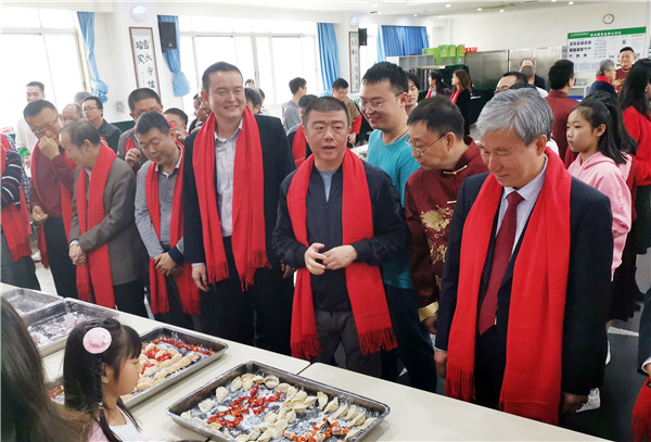 伴隨著喜慶的音樂,各位領導來到了包餃子活動的現(xiàn)場。辛杰率先拿起面團,以熟練的手藝搟起餃子皮,其余領導也加入到包餃子的行列,大家齊心協(xié)力,分秒間一個個餃子以精致的造型展現(xiàn)在大家面前。