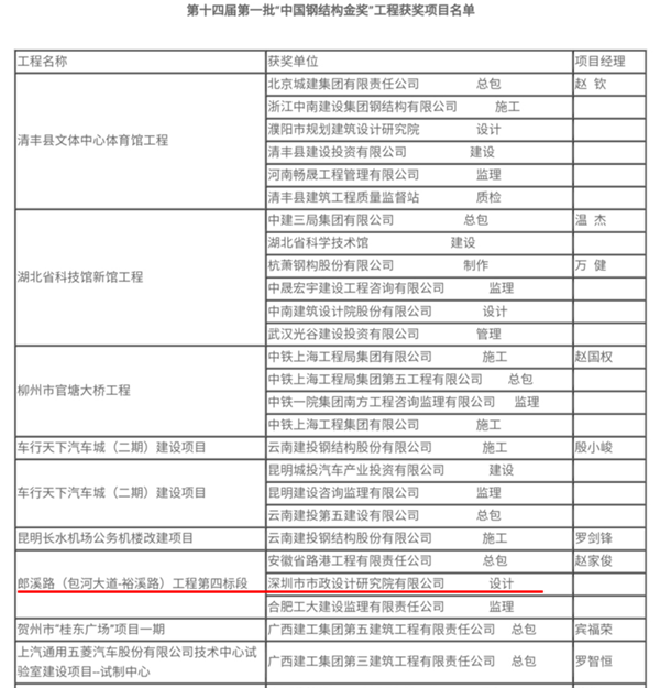 第十四屆第一批“中國鋼結(jié)構(gòu)金獎”工程獲獎項(xiàng)目名單