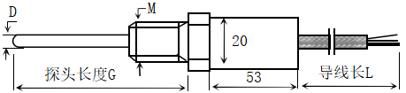 | 分度號(hào) | 測(cè)量范圍 | 熱響應(yīng)時(shí)間 | 導(dǎo)線長(zhǎng)度L(mm) |