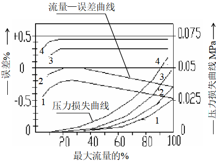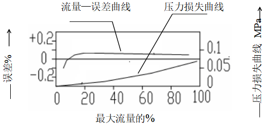 0.2級(jí)流量計(jì)誤差和壓力損失曲線圖: