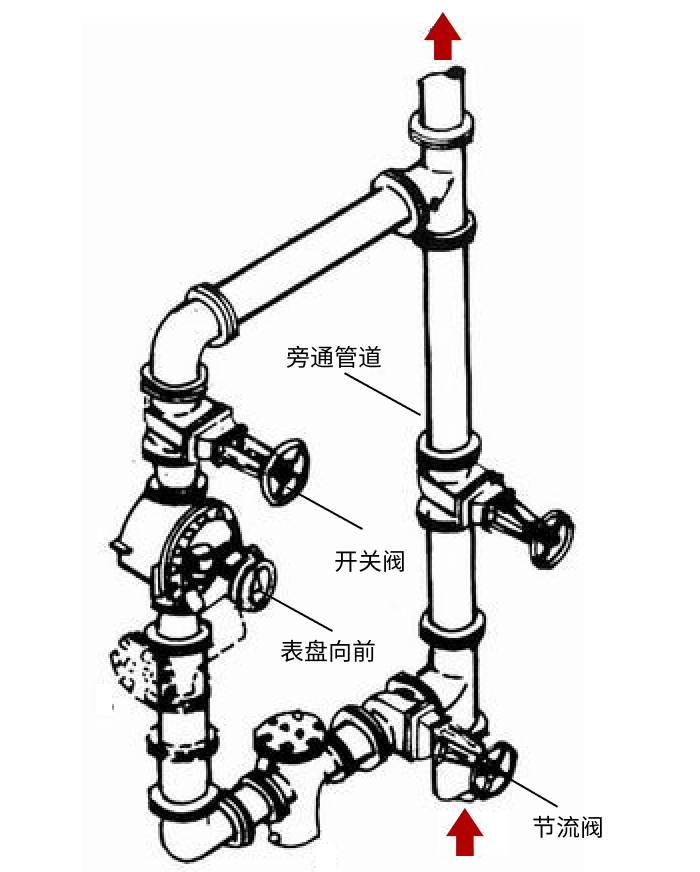 在連續(xù)使用部門,流量計(jì)須加旁通管道。
