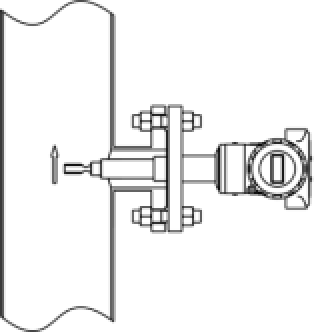垂直安裝時(shí),采用垂直向上流向的管道上安裝密度/濃度計(jì),在流速≤大約O.5m/s 時(shí),按照上圖安裝。
