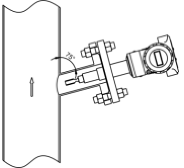 垂直安裝時(shí),采用垂直向上流向的管道上安裝密度/濃度計(jì),在流速0.5-3m/s時(shí)或介質(zhì)粘稠時(shí),按照上圖安裝。