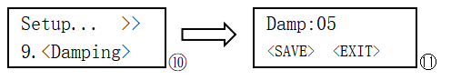 長(zhǎng)按 M 鍵 5 秒以上,進(jìn)入設(shè)置菜單,按 8 次 S 鍵,進(jìn)入菜單9 <Damping>?、?,按 M 鍵,進(jìn)入設(shè)置。